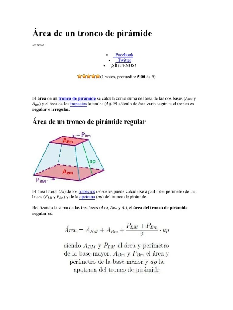 By keith robinson by keith robinson if you're reading this chances are you've got some interest in making your life less stressed. La fórmula general para el área total de superficie de una pirámide regular es donde p . José andalón explica la fórmula para hallar el área de una pirámide. El perímetro de la base es la suma de los lados. To revisit this article, select. I know it's a big deal for me. Una pirámide cuadrangular tiene un cuadrilátero como base. El área total de superficie de una pirámide regular es . Usamos la fórmula a = 1 2 b h. Calcular el área y el volumen de una pirámide cuadrada. To revisit this article, visit my profile, then view saved stories. El área lateral es igual al perímetro del polígono de la base multiplicado por la altura de una cara lateral ( ap o apotema) de la pirámide y dividido entre .